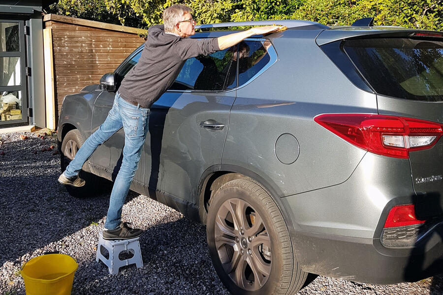 The first and very obvious challenge is the Ssangyong’s size; the second, which becomes apparent almost immediately afterwards, is that you will need to achieve some altitude if you’re even to see its roof, never mind give this veldt of steel the sponge and leather treatment. This is hardly the Rexton’s fault, of course: if you want a tall, capacious vehicle, then by definition it is going to be big. You just need to allow yourself a good couple of hours if you’re going to make a good job of it.