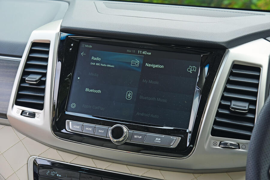 That gets you the EX trim; there’s also an ELX version, but we have greedily gone for the Ultimate, in no small part because it provides one of the Rexton’s biggest visual surprises. Which is a part-quilted, nappa leather interior redolent of a Bentley’s. Of course, close inspection soon shows why a Bentley cabin costs so much more – not because the Rexton’s is poorly finished, but because Bentley goes much further with detail like knurled metal gearlever knobs. Sit aboard the Rexton, though, and you’ll be enjoying a decently premium experience, if not a super-luxury one.